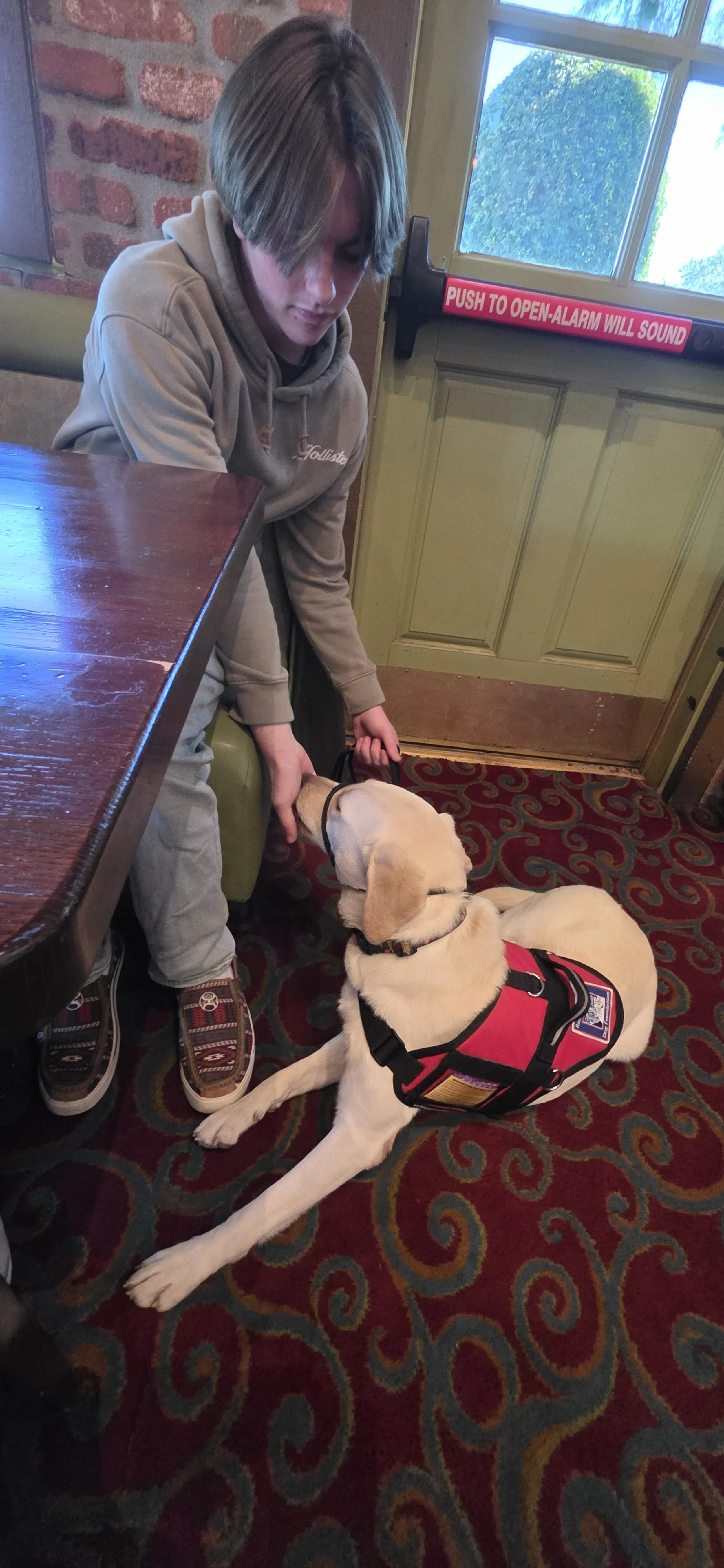 My name is Emily and I have been a type 1 diabetic for 23 years. I use an insulin pump and CGM. I noticed at 29 I wasn't always able to detect my low sugars as I once was and having a small child this concerned me. Occasionally the CGM malfunctions and I have to send it back to the company. When this occurs I am without the transmitter for two or three days while the replacement is being shipped. I have had a handful of close calls with low sugars that I didn't notice I was low. I heard about diabetic alert dogs and was very fortunate to come across the Ron and Vicki Santo Foundation. I received my diabetic alert dog, Maxx December 2021. Gracie, the trainer, has been amazing throughout the whole process. Since having Maxx he alerted me to a low sugar I had at the mall the first week I had him. I had not felt this low (which was 32) and my CGM had not yet detected it. It was the Christmas season and the mall was very busy. I was amazed that with everything going on he was able to alert so soon especially before the CGM. Maxx has been a blessing to me and my family, having type 1 diabetes the more tools you have the better off you are to effectively manage the disease. I feel more secure knowing between myself, Maxx and my CGM I have a better chance of keeping my A1c in range. I am forever grateful to the Ron and Vicki Santo Foundation for providing me with this opportunity.