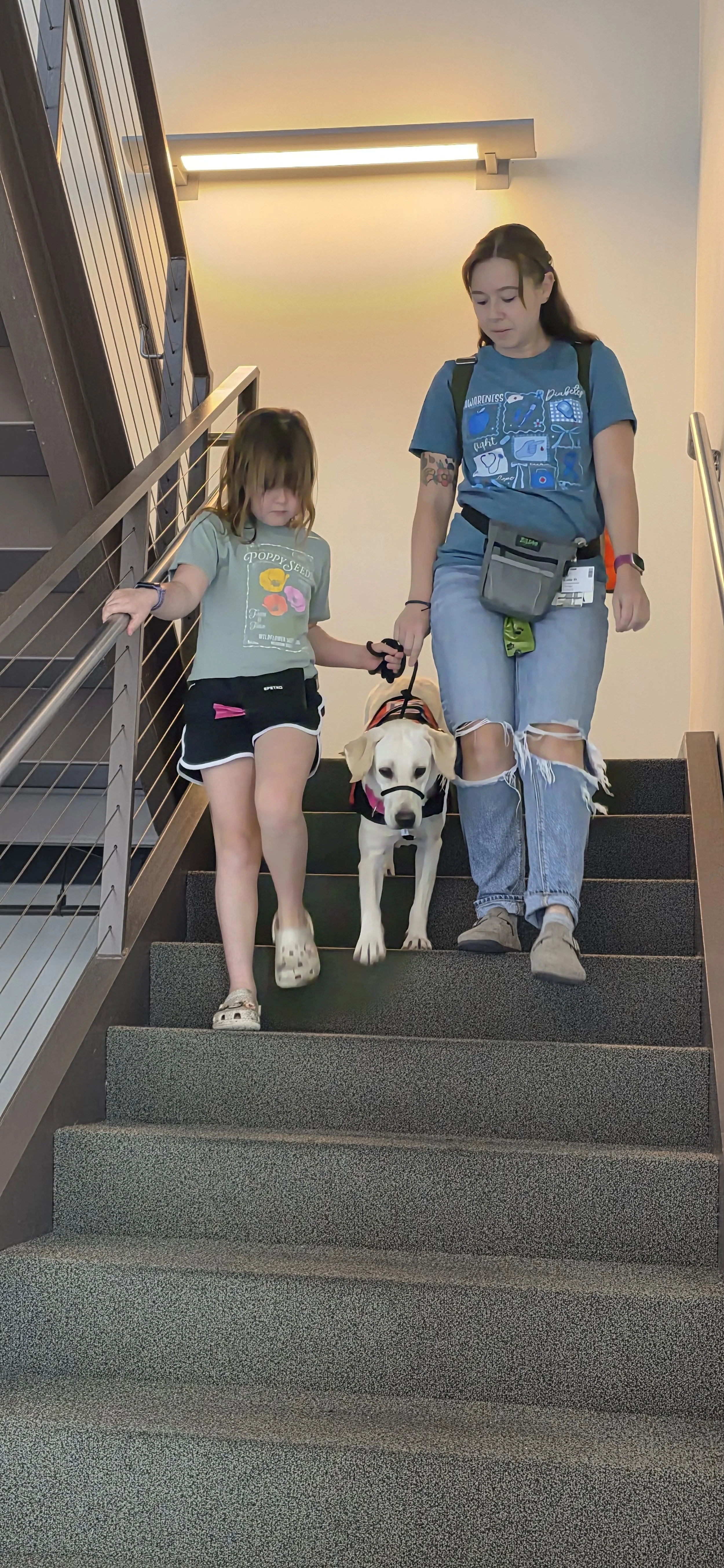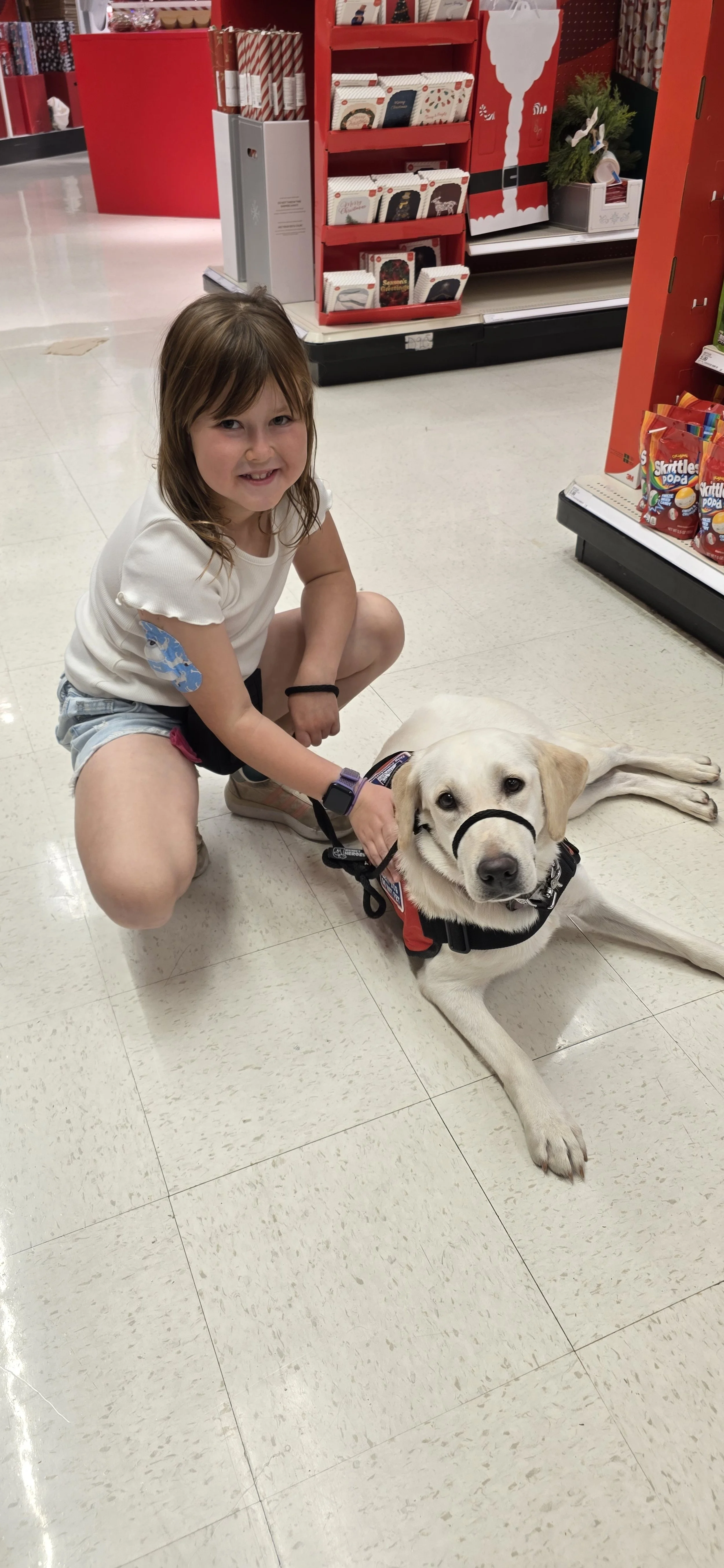 Gwen was just 6 years old and struggling to maintain her blood sugar from her condition called Glycogen Storage Disease when she met her Chevy. It was love at first sniff and the rest is history. Chevy currently attends fifth grade with Gwen and loves his life and takes his job to keep Gwen and now her younger sister with the same disease safe.